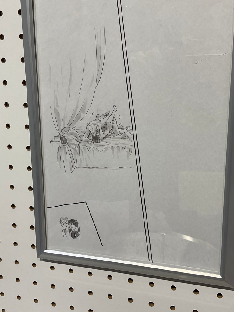 Chishanomi’s art style ranges from abstract and comical to painterly and cinematic, and it always hits just the right emotional beats. The characters’ expressions and body language — particularly during the ero scenes — are especially impactful. It was a real treat to see the art we’ve admired adorn the walls in large panels. I could honestly stare at Chishanomi-sensei’s art for hours!!