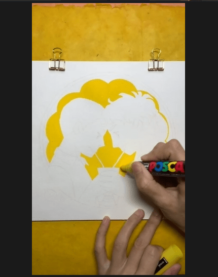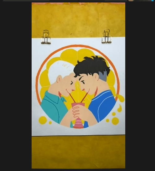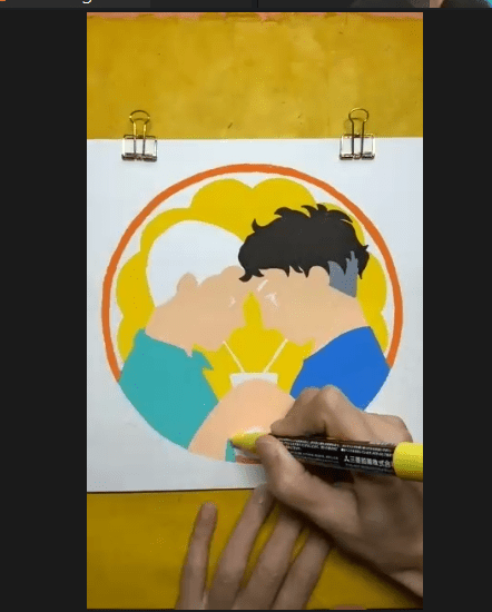 It was exciting to watch the illustration develop little by little. Before long, fans were able to recognize the characters from Yamane-sensei’s Save the Serious Talk for Later. She also included a citrus fruit in the background especially for Citrus Con!
