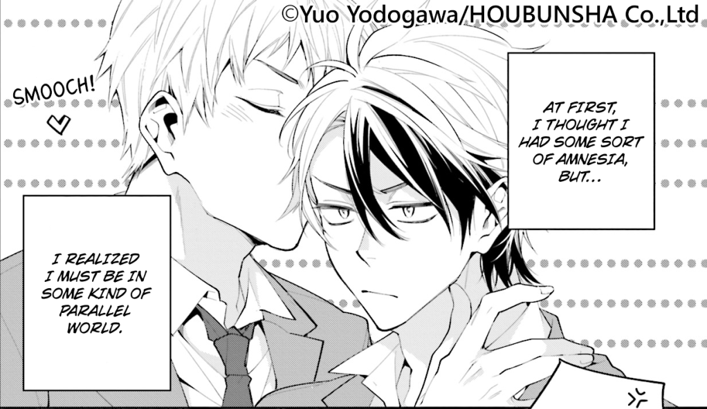 I always enjoy seeing BL authors connecting multiple works of theirs in some way — such as spinoff series, or when characters in one series appear in another, sometimes taking place in a totally different universe. It really shows the love the mangaka has for their characters, and serves as a fun little Easter egg for their fans who read their every work.