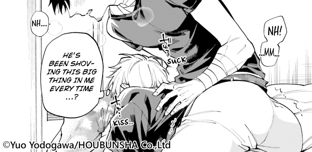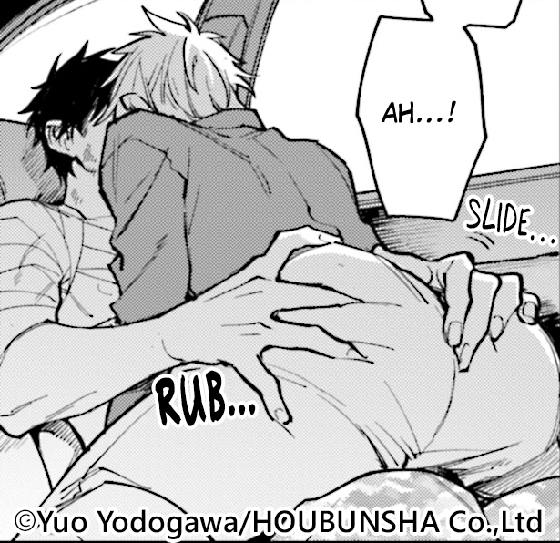 Character design-wise, Yodogawa-sensei is serving up some nice eye candy. Buff and brave Kazuma is what I believe the kids today call a “Zaddy,” and timid but daring Haruomi is certified THICC. Seriously — even in scenes where he’s fully clothed and his ass is decidedly NOT the main point of interest, your eyes can’t help but wander to that juicy bum hiding underneath them jeans… (I mean, it can’t be just me, right?