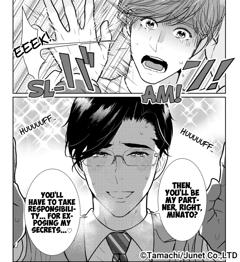 Don’t be fooled by his “cool guy in glasses” demeanor — the man is a walking dumpster fire, full of pent-up sexual frustration and insecurity who sets his sights on Minato as the one for him after a short, seemingly surface-level interaction. After his past experiences, you’d think Minato would run for the hills rather than try to work with the horny disaster of a client he’s been given, but ever the dutiful matchmaker, Minato decides then and there that he will find this well-endowed willy wielder a spouse. Thus begins a battle of wits and strategy between the determined Minato and the indomitable (and clingy) Akihi, who has no intentions of tying the knot with anyone but his beloved brown-haired baby boi.