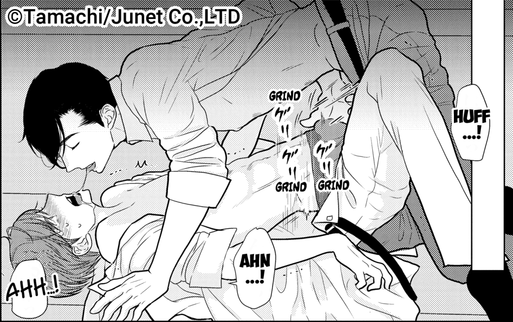 However, it only takes a few moments for Akihi to reveal his true colors. His classy facade is but a cover for his true identity — a desperate virgin whose gargantuan member has kept him from finding true love. He declares that Minato is the partner he’s been waiting for, and whips out his ding-dong right there in the meeting room, eager to consummate their destined love. Minato reacts as anyone would, and things unravel from there…