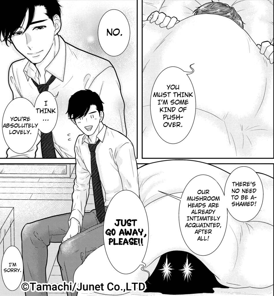 …BL mangaka probably aren’t all psychics, though, so I’ll just call it a stroke of luck that I encountered Tamachi’s “I’m An XL. Could You Find Me A Spouse?” while on the job here at Renta!