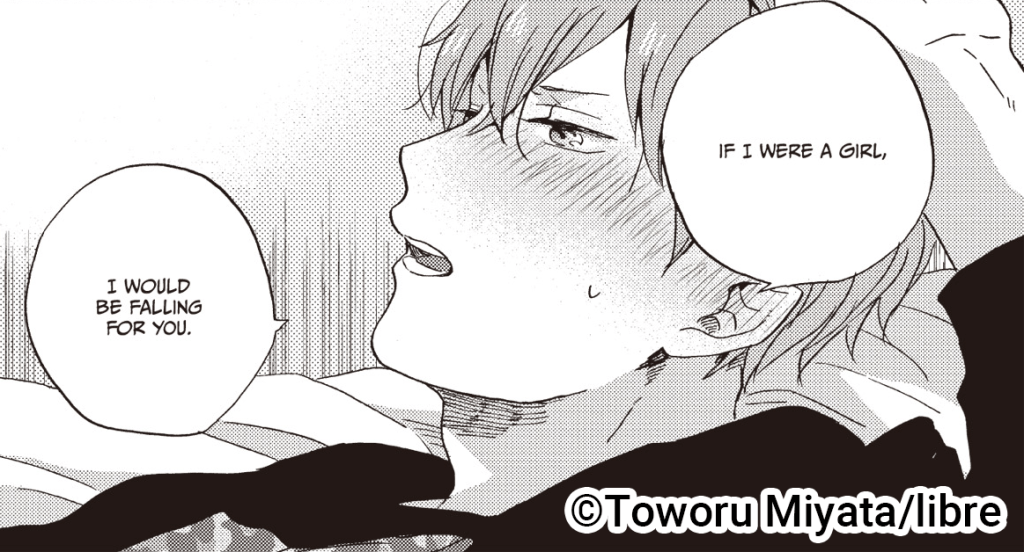 Something I feel across all of Miyata’s works is a distinct sensitivity in the writing. The characters’ emotions feel very real (sometimes painfully so), and their troubles and worries are understandable. There are some stories out there where you just want to yell at the characters to admit their feelings and kiss already (and hey, those stories can be enjoyable too!), but with Toworu Miyata’s stories, any frustration about the potential romance is balanced out with the satisfaction of watching the characters achieving personal growth, coming to terms with their feelings on their own, and ending up together naturally.