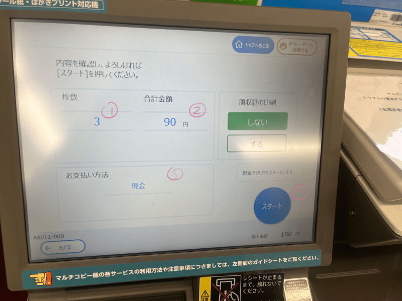 ) The printing cost depends on the final product—photos are 20~80 yen per image, documents can be as low as 5~50 depending on if they’re color or black and white and what size paper is being used, and stuff like stickers are around 200~400 per sheet.