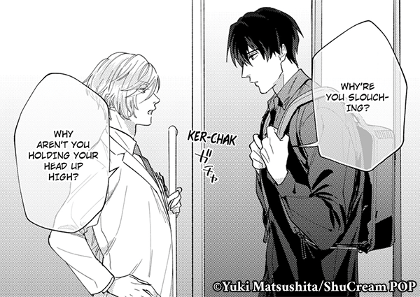 Yuki Matsushita’s Director! It’s Time To Collect A Sample is a wild ride from start to finish. Reclusive lab worker Toya has been transferred to the most prestigious lab in Kamishiro Pharmaceuticals, where they’re working on the panacea to cure all disease. Toya’s been desperate to help his sick grandma, so he’ll do anything he can to assist. When he meets the head of the lab, Saku Kamishiro himself, it turns out the main ingredient for the cure-all drug is coming from an unexpected source: Saku’s jizz.