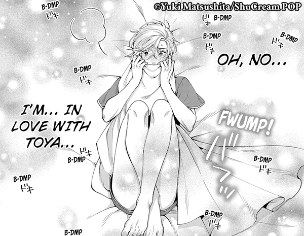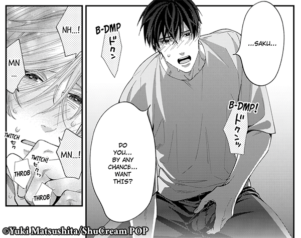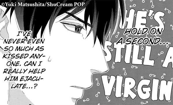 The premise may sound bizarre, because it is. Yuki Matsushita is a slapstick genius, and her comedic timing is amazing. There are a million scenes in this manga where you’re left shaking your head, face in your hands. Toya may be handsome and sweet, but he’s a total virgin, so it’s so funny watching him try to figure out how to pleasure another man when he doesn’t even know where to put his hands. Saku is equally pure and science-minded, so he blunders through each collection trying to act like it’s totally normal while being shocked by how much he’s into it.
