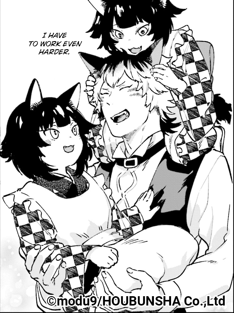 This is the first manga from modu9-sensei that we’ve localized and hosted on Renta!, and I really hope we can welcome more of their stories in the future! I can’t get enough of their dynamic and adorable art style. The little details in the manga, like Sabi’s uniform shirt buttons always looking ready to pop due to his large build, the nostalgic Taisho era-esque aesthetic of the setting, and the accuracy of the cat body language incoporated into Sabi’s posing (resident cat expert Ames can attest to this!) show that a lot of love and attention went into this book. Whether you’re a cat lover, a catboy lover, both, or neither, I’m sure you can appreciate it as a work of art.