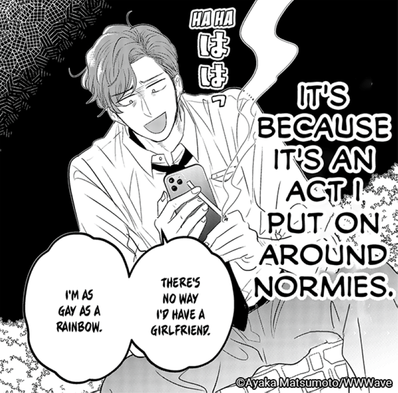 Getting to know Ikai, though, he can feel his walls coming down. By the end, Honma is outed as a traumatized mess—he’s ashamed of his sexuality, has no confidence in himself and his place in the world, and is terrified of being known. Honma is, in fact, just another confused, desperate, lonely human. Only by getting to know Ikai is Honma able to unravel his trauma and unlearn the behaviors that cut him off from the world. It’s a pretty heavy manga (I cry every time I read it), but I love the themes of putting up a mask to protect yourself from the world, and meeting the one person who can tear it all down and help build you back up.