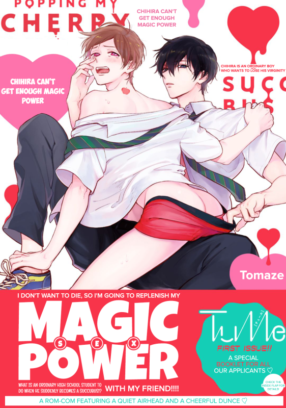 When he talks to his mom about it, he’s shook to find he’s actually part succubus—it runs in his family, and occasionally shows up as a recessive gene. Now that the mark has presented itself, most of his sustenance needs to be gained through magic power—which comes in the form of life force converted through sex. Thankfully, Chihira’s childhood friend Arou seems more than happy to help him out. First, they try kissing—but he can’t get enough magical power. So then they try sex—which works great! But, how is poor Chihira supposed to suddenly accept his fate, even with Arou’s help? And, exactly why is Arou so eager to help out?