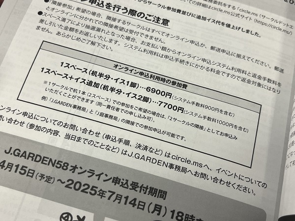 → The application form for the next J.GARDEN (just 6900 yen—nice!—to table!)