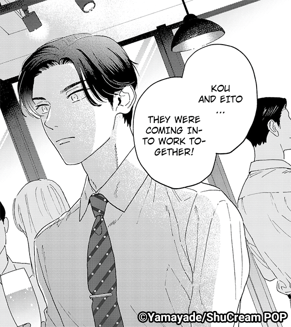 At the office, Eito Kanda and Kou Ueno have a cat-and-mouse relationship. Their coworkers are convinced that they have some kind of unspoken beef with each other and that Eito messes up on purpose just to mess with Kou. And, who can blame them? The two couldn’t possibly be more different: Kou is aloof, quiet, and detail-oriented—which resulted in him being removed from the sales department and swapped into accounting—while Eito is the company’s star salesman. Intensely outgoing and hardworking, with strong communication skills, Eito’s loved by most everyone in the office while Kou mostly keeps to himself.
