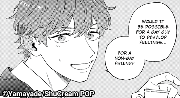 Eito, however…? Ever since being told he’s not Kou’s “type” as a backhanded form of reassurance when Kou came out to him, Eito’s been on a strange path to prove to Kou that he is desirable. Is this just his pride talking, or is something inside him desperate to get even closer to Kou than he already is? He already stays over at Kou’s place constantly. The two already know each other’s deepest, darkest secrets. So, why is Kou always keeping him at an arm’s length? And why is Eito equally as desperate to close that divide?