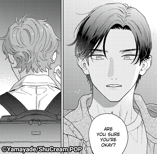 In reality, though, the two are incredibly close. Having gotten to know each other during their time together in sales, Eito and Kou know each other better than almost anyone. Kou knows all about Eito’s issues with his father, and Eito knows all about Kou’s sexuality. The two hide their relationship at the office because Kou is skittish about their coworkers getting any ideas about just how friendly the two are. They’re just friends, and Kou is intent on keeping it that way. Having been traumatized by a previous relationship, Kou isn’t keen on dating a friend, and he’s particularly uninterested in dating a straight friend.