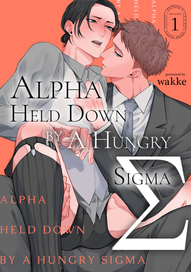 Sou: Everything about this cover is just so eye-catching. The bright yet sultry solid orange background, the poses and expressions of the characters, the word/symbol “Sigma” which dares to shake up the Omegaverse as we know it, the SOCK GARTERS (!!!)…. A glance is all you need to be drawn in and want to see exactly how this sexy alpha finds himself in the submissive position.